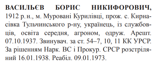 Борис Васильєв розстріляний 16.01.1938.