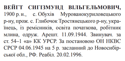 Реабілітований: Вінницькою облпрокуратурою 20.02.1996 Реабілітовані історією