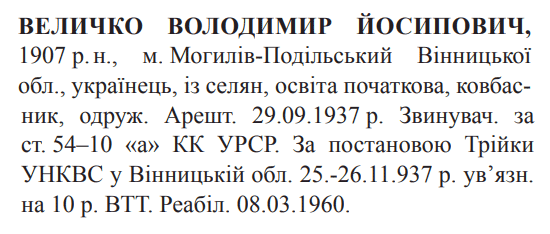 Реабілітований: 08.03.1960 Реабілітовані історією