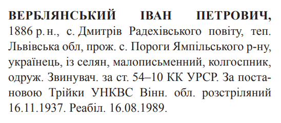 Іван Верблянський розстріляний 16.11.1937.