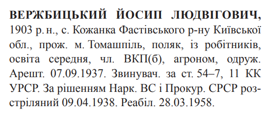 Реабілітований: Верховним Судом УССР 28.03.1958 Реабілітовані історією