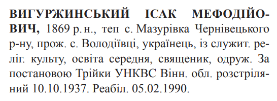 Ісак Вигуржинський розстріляний 10.10.1937.