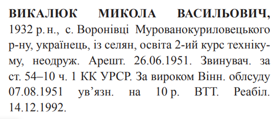 Реабілітований: Вінницьким облпрокурором 14.12.1992 Реабілітовані історією