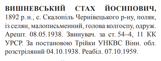 Стах Вишневський розстріляний 04.10.1938.