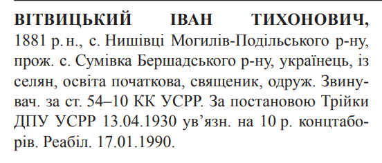 Реабілітований: Вінницьким облпрокурором 17.01.1990 Реабілітовані історією