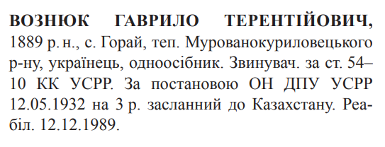 Реабілітований: Вінницькою облпрокуратурою 12.12.1989 Реабілітовані історією