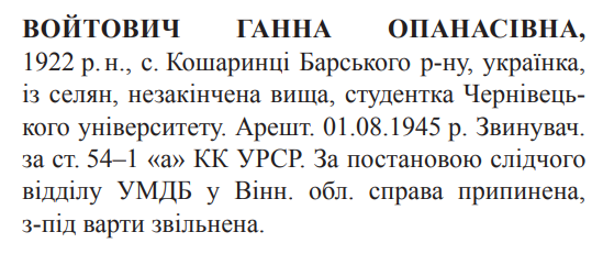 Реабілітована: н/д Реабілітовані історією