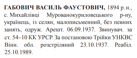 Реабілітований: Вінницьким облпрокурором 25.10.1989 Реабілітовані історією