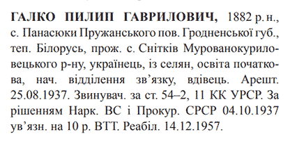 Реабілітований: 14.12.1957 Реабілітовані історією