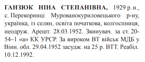 Реабілітована: 10.12.1992 Реабілітовані історією