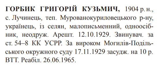 Реабілітований: Верховним судом УССР 26.06.1965 Реабілітовані історією