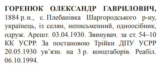 Реабілітований: Вінницькою облпрокуратурою 06.10.1994 Реабілітовані історією