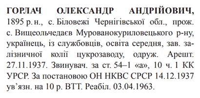 Реабілітований: Вінницьким облсудом 03.04.1963 Реабілітовані історією