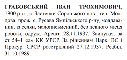 Іван Грабовський розстріляний 27.12.1937.