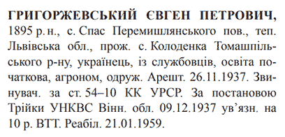 Реабілітований: Вінницьким облсудом 21.01.1959 Реабілітовані історією