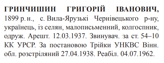 Реабілітований: 04.07.1962 Реабілітовані історією