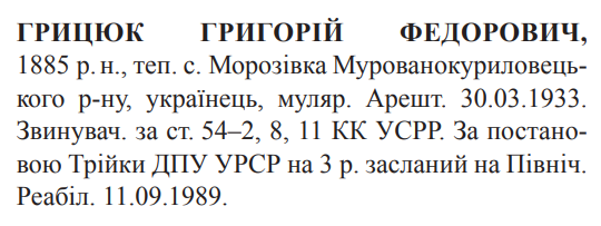 Реабілітований: 11.09.1989 Реабілітовані історією