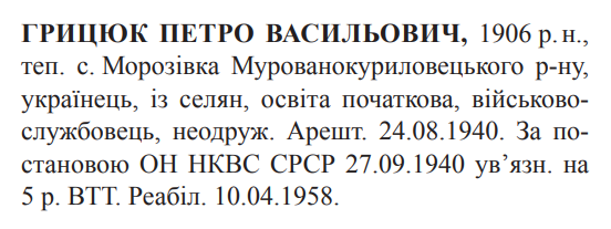 Реабілітований: 10.04.1958 Реабілітовані історією