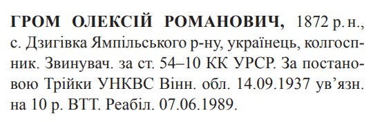 Реабілітований: 07.06.1989 Реабілітовані історією