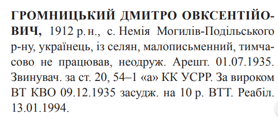 Реабілітований: 13.01.1994 Реабілітовані історією