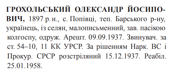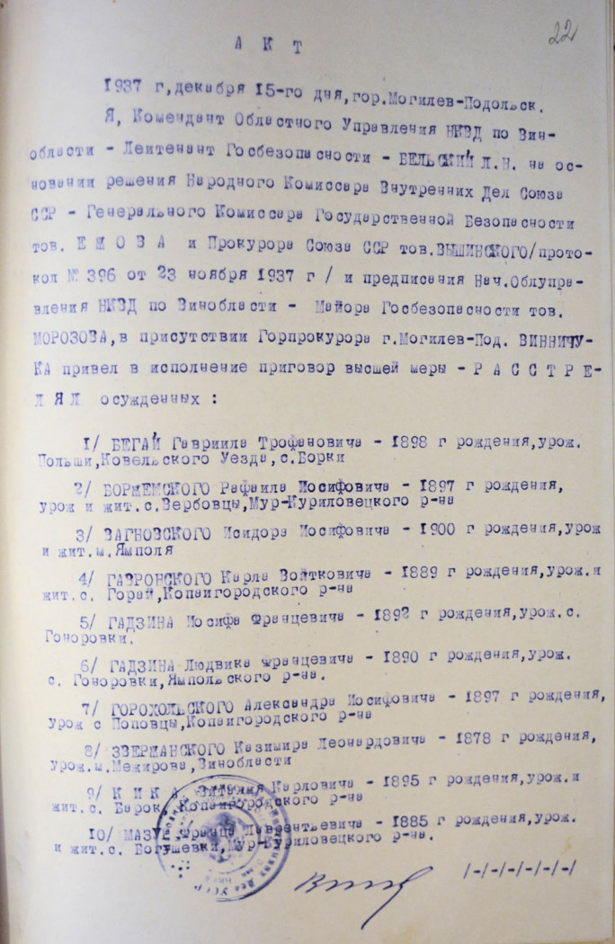 Акт розстрілу в м. Могилів-Подільський 15.12.1937 (23-239)