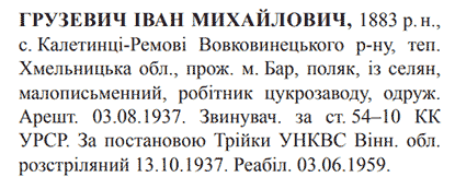 Іван Грузевич розстріляний 13.10.1937.