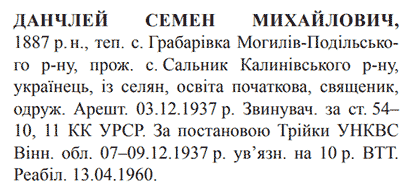 Реабілітований: Вінницьким облсудом 13.04.1960 Реабілітовані історією
