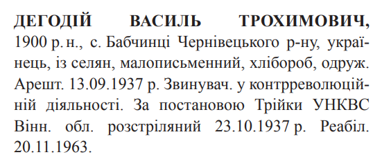 Василь Дегодій розстріляний 23.10.1937 р.