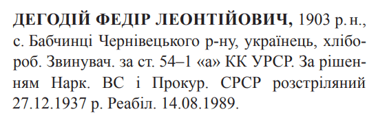Реабілітований: Вінницьким облпрокурором 14.08.1989 р. Реабілітовані історією