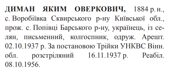 Реабілітований: Вінницьким облсудом 08.10.1956 Реабілітовані історією