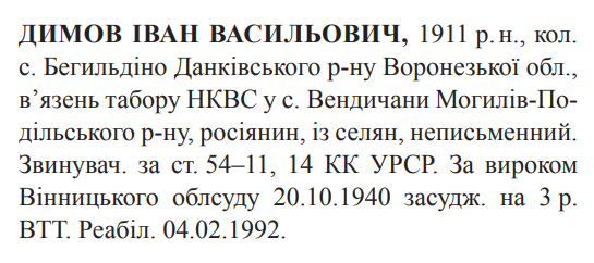 в'язень табору №211 НКВД у с. Вендичани Могилів-Подільського р-ну