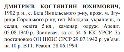Реабілітований: 28.06.1994 Реабілітовані історією
