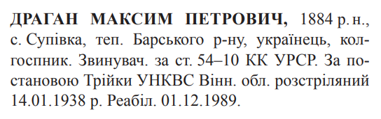 Максим Драган розстріляний 14.01.1938.