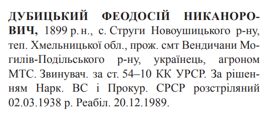Реабілітований: 20.12.1989 Реабілітовані історією
