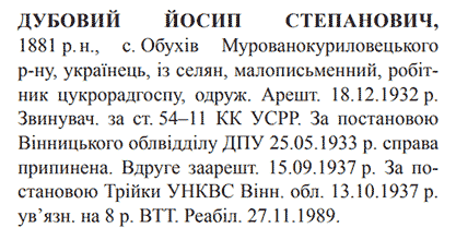 Реабілітований: Вінницьким облпрокурором 27.11.1989 Реабілітовані історією