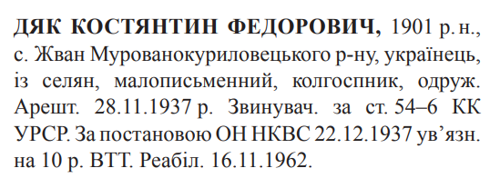 Реабілітований: 16.11.1962 Реабілітовані історією