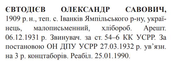 Реабілітований: 25.01.1990 Реабілітовані історією