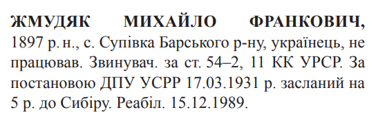 Реабілітований: Вінницькою облпрокуратурою 15.12.1989 Реабілітовані історією