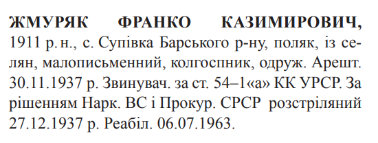 Франко Жмуряк розстріляний 27.12.1937.