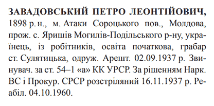 Петро Завадовський розстріляний 16.11.1937.