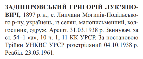 Реабілітований: 23.05.1961 Реабілітовані історією