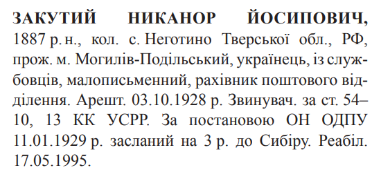 Реабілітований: Вінницьким облпрокурором 17.05.1995 Реабілітовані історією