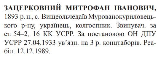 Реабілітований: Вінницькою облпрокуратурою 12.12.1989 Реабілітовані історією