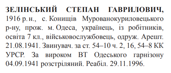 Степан Зелінський розстріляний 04.09.1941.