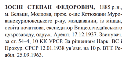 Реабілітований: Вінницьким облсудом 25.09.1963 Реабілітовані історією