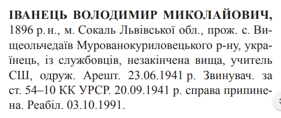 Реабілітований: 03.10.1991 Реабілітовані історією