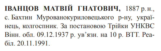 Реабілітований: Вінницькою облпрокуратурою 20.11.1991 Реабілітовані історією