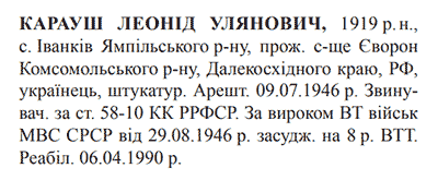 Реабілітований: 06.04.1990 Реабілітовані історією