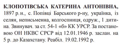 Реабілітована: 19.02.1992 Реабілітовані історією
