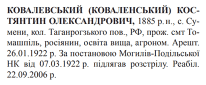 Ковалевський (Коваленський) Костянтин Олександрович